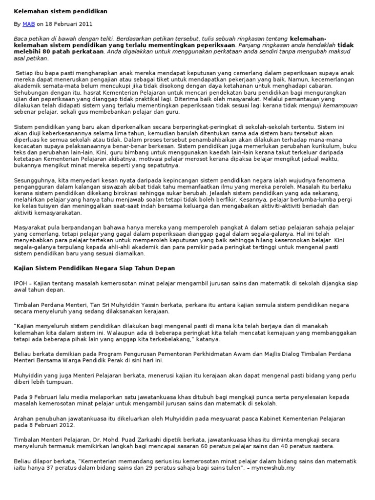 Kelemahan Sistem Pendidikan Di Malaysia Pdf